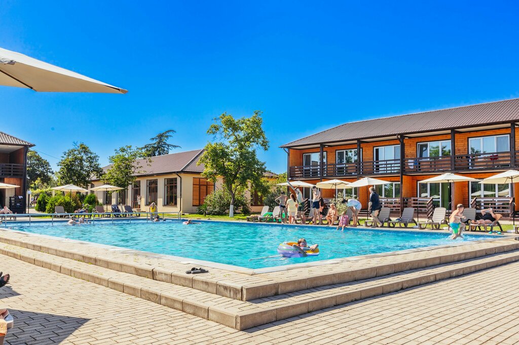Бассейн — главная гордость отеля и одна из наиболее частых похвал в отзывах. Его описывают как «один из самых больших в Абхазии», с подогревом, чистой водой и детским отсеком. Гости сравнивают воду с «парным молоком», что особенно ценно в прохладное время года (конец октября). Бассейн работает с мая по начало октября, на ночь его закрывают тентом для сохранения тепла.