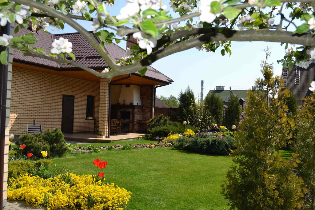 - Территория: Участок вокруг дома живописный, ухоженный, с прекрасным газоном и зеленью. Это идеальное место для спокойного отдыха и детских игр.