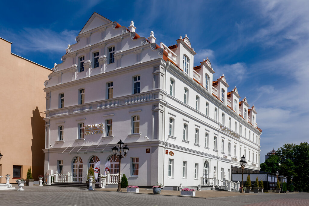 Апарт-отель «Семашко» — один из лучших вариантов размещения в центре Гродно, предлагающий гостям комфортные номера с мини-кухнями и доступом ко всем ключевым достопримечательностям города. Отель расположен в историческом здании, отреставрированном с сохранением атмосферы и дополненном современным ремонтом. Главные козыри — безупречное расположение на Советской площади, разнообразные вкусные завтраки в ресторане «Муравьев», наличие собственной парковки и в целом отзывчивый персонал. Однако у отеля есть и заметные минусы: значительные проблемы со звукоизоляцией (слышны соседи, утренние работы в ресторане, лай служебных собак из расположенной рядом тюрьмы), не всегда предсказуемое качество Wi-Fi и довольно высокая стоимость проживания для позиционирования как трехзвездочного отеля. Общая оценка — крепкие 8.2/10: отличный выбор для туристов, приоритетом которых является локация и уютные номера, но не для тех, кто особо чувствителен к ночному шуму.