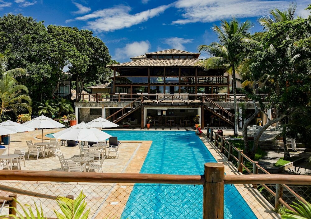 Это загородная pousada (гостевой дом) в колоритном посёлке Феррадура, ориентированная на спокойный и расслабленный отдых в окружении тропической зелени. Отель расположен на просторной территории с садами, имеет огромный открытый бассейн, зону джакузи, сауну, детскую игровую площадку и собственный пруд — по-настоящему оазис тишины, который по ощущениям больше похож на частную виллу, чем на классический городской отель.