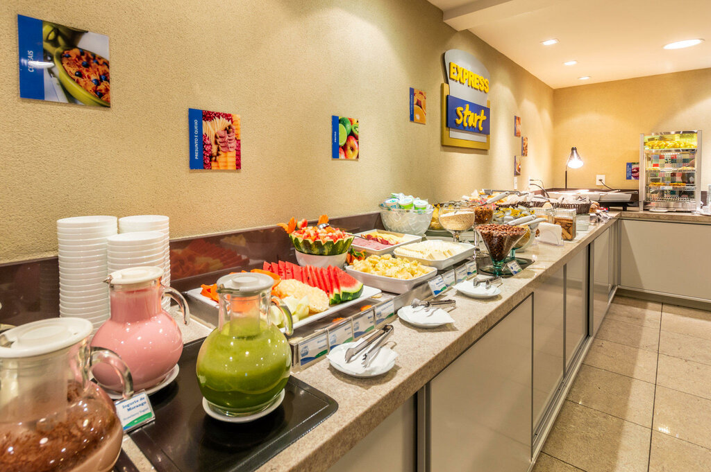 - Качество и разнообразие: Очень щедрый, «по-бразильски», с широким выбором блюд. Гости отмечают свежие фрукты, выпечку (особенно «bolo de milho» — кукурузный пирог), натуральные соки, тапиоку, яйца, мясные закуски, йогурты, холодные закуски и паштеты.