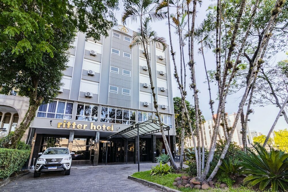 Ritter Hotéis — классический городской отель, работающий с 1974 года. Основные особенности включают удобное расположение рядом с автовокзалом, обширную инфраструктуру для мероприятий (конференц-центр площадью 1500 кв. м), внутренний сад, бассейн на террасе и ресторан с видом на сад. Отель является pet-friendly, что делает его привлекательным для путешественников с домашними животными. Внешний вид и интерьеры сохранили стиль 1980–1990-х годов, что некоторые гости воспринимают как очарование ретро, а другие — как признак необходимости реновации.
