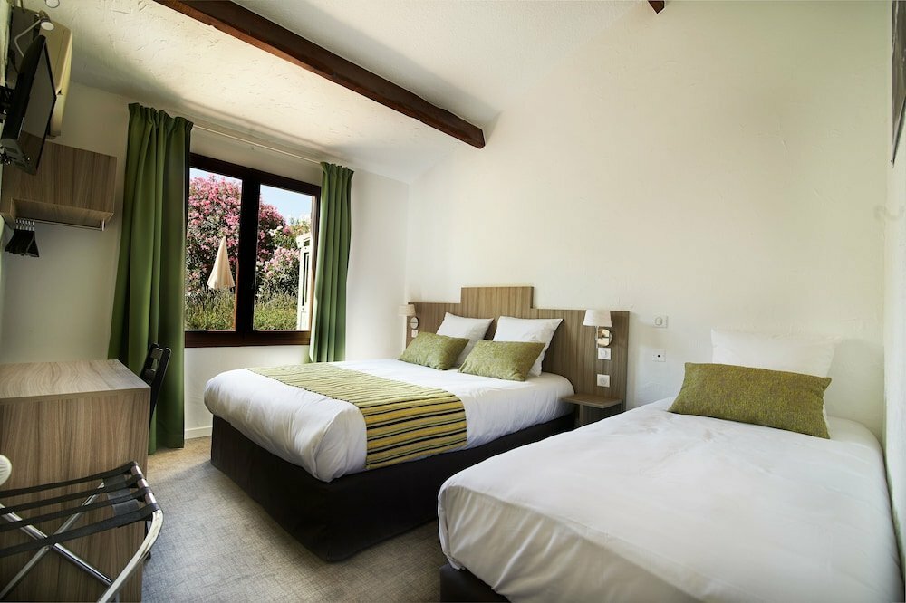 Hôtel des Croisades в живописном Эг-Морте — уютный двухзвёздочный отель с выдающимся сервисом и идеальной локацией у средневековых крепостных стен. Это семейный бизнес с тёплой атмосферой, безупречной чистотой и радушными хозяевами, которые искренне заботятся о гостях. Ключевые преимущества — бесплатная парковка по всему городу благодаря выдаваемому пропуску, пятиминутная пешая доступность до старого города и обширный завтрак. При этом некоторые номера требуют обновления, а стены в коридорах могут быть тонковаты. Идеальный выбор для непритязательных путешественников, велотуристов и тех, кто ценит душевность больше, чем роскошь.