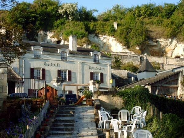 Отель занимает историческое здание из белого туфа (tuffeau), типичного для архитектуры долины Луары, и позицинируется как отель типа «Logis de France». В нём всего 12 номеров, что создаёт камерную, почти семейную атмосферу. Ключевые особенности — бесплатная частная парковка напротив отеля, принадлежащий отелю ресторан Montsorelli через дорогу с террасой на берегу реки и троюлодейный зал для завтраков, вырубленный в скале под зданием.