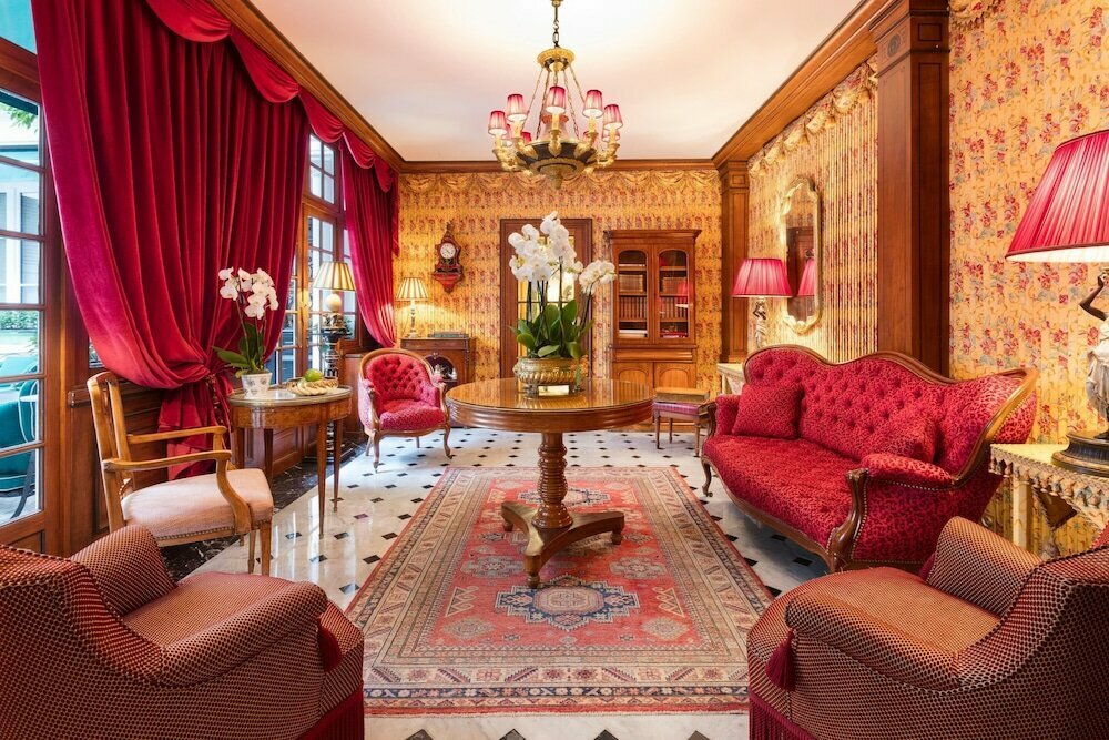 Отель Duc de Saint-Simon занимает здание, которое когда-то было городской усадьбой XVIII века, что полностью определяет его характер. Это не просто гостиница, а тщательно обустроенное пространство, пропитанное историей и парижским шармом. Интерьеры представляют собой смесь антикварной мебели, богатых тканей (включая обивку стен), произведений искусства и каминов, создающих ощущение уютного частного дома. Отель небольшой, здесь всего 34 номера, что позволяет персоналу уделять внимание каждому гостю. Вход через тихий внутренний двор-сад лишь усиливает это впечатление уединённости и покоя.