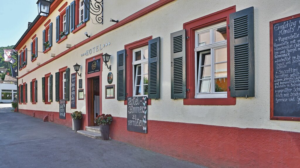 Отель расположен в старинном фахверковом здании XVII века в тихом районе Хандшусхайм. Предлагает 15 номеров различного размера — от небольших до просторных семейных, включая варианты с общими ванными комнатами. Основная особенность — собственный итальянский ресторан с внутренним двориком-пивным садом, который является центральным элементом гостеприимства.