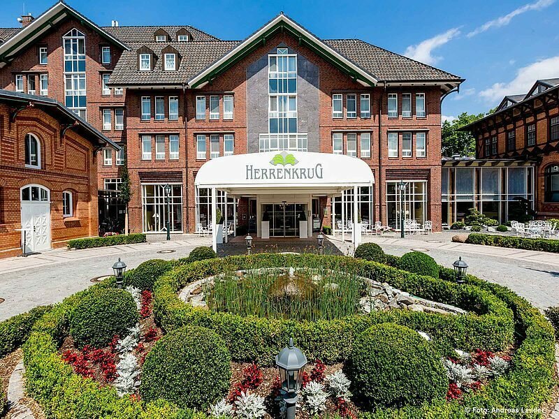 • Dorint Herrenkrug Parkhotel — четырехзвездочный отель с противоречивой оценкой 6.8/10 из-за сильного износа номеров и нестабильного сервиса.