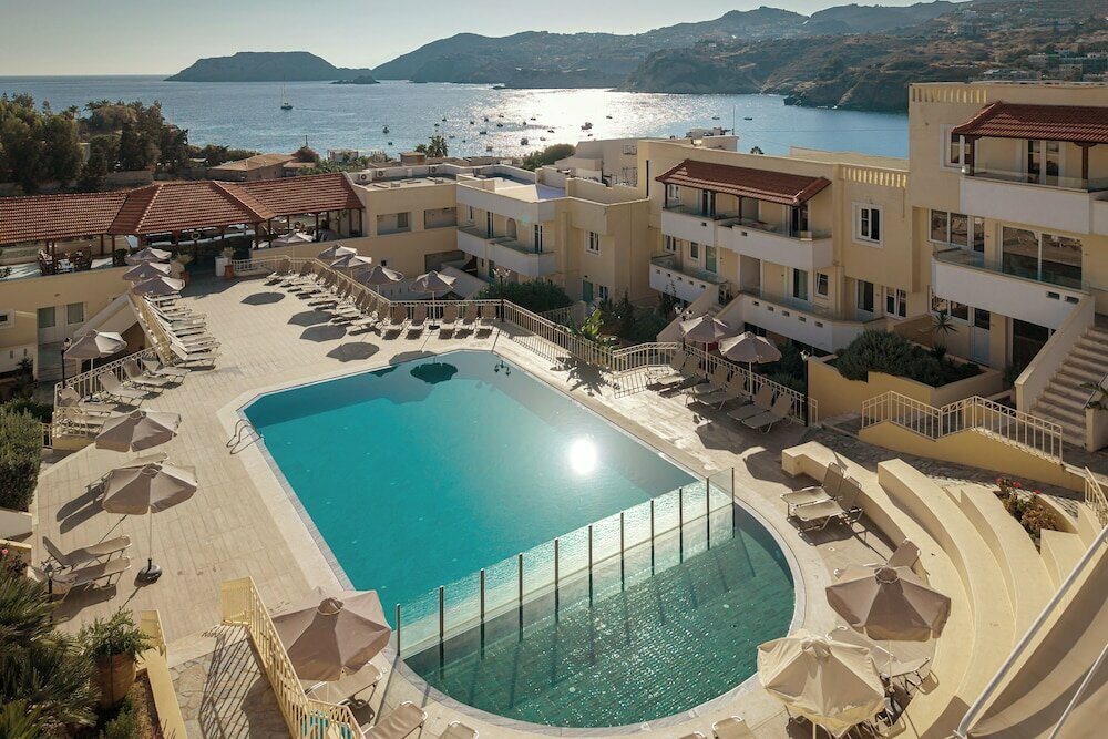 - Пляжи: Основной пляж Агия-Пелагия находится в 2–5 минутах ходьбы от отеля (около 300 метров). Пляж муниципальный, с мелким песком и пологим входом в воду. Есть платные лежаки и зонтики (€6–10 за два лежака и зонт).