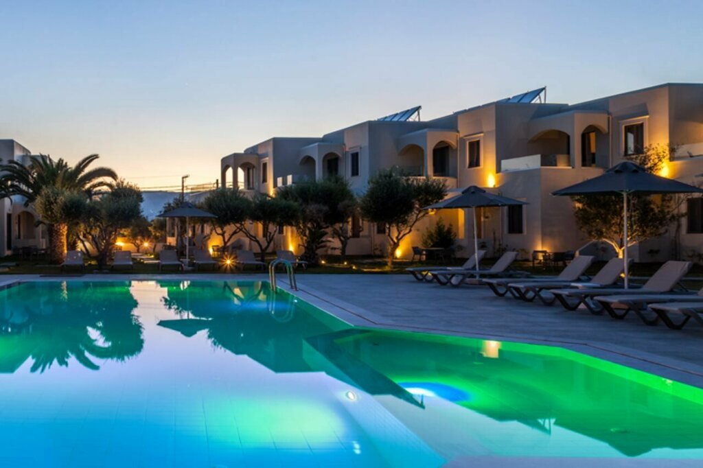 - Расположение: Район Аммудара, Ираклион, Крит. Отель находится на «второй линии» от моря.