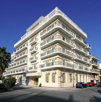 Описание: Отель позиционирует себя как 4-звёздочная гостиница, но по факту предлагает стандарты бюджетного сегмента в плане оснащения и инфраструктуры. Это крупное 5-этажное здание в стиле ар-деко с роскошными (иногда эклектичными) общественными зонами, которые резко контрастируют с простыми, а иногда и устаревшими номерами. Отель популярен среди групп автобусных туров как промежуточная остановка на пути к Дельфам.