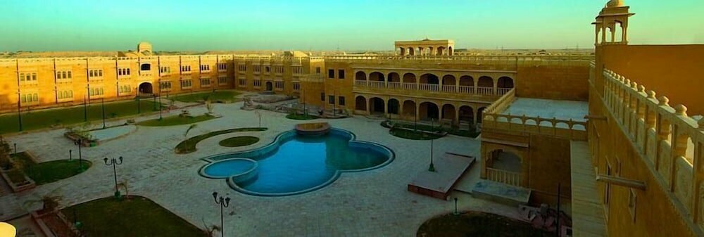 Расположение: Отель находится в 2–5 км от центра Джайсалмера, на трассе NH 15. Это можно охарактеризовать как место на отшибе, в исторически стилизованном «пустынном» комплексе, удалённом от городской суеты.
