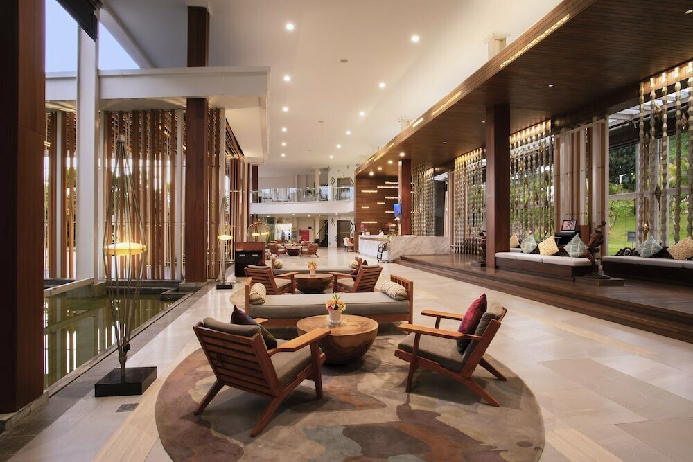 Описание: Aruna Senggigi Resort and Convention позиционируется как современный комплекс для отдыха и деловых мероприятий. Отель занимает большую территорию между побережьем и холмом, что позволяет предложить гостям разнообразные виды из номеров. Инфраструктура включает два открытых бассейна, пляжную зону, спа-центр, тренажёрный зал, несколько ресторанов и конференц-залы. Стиль — комбинация современного дизайна с индонезийскими элементами, обширные зелёные зоны.