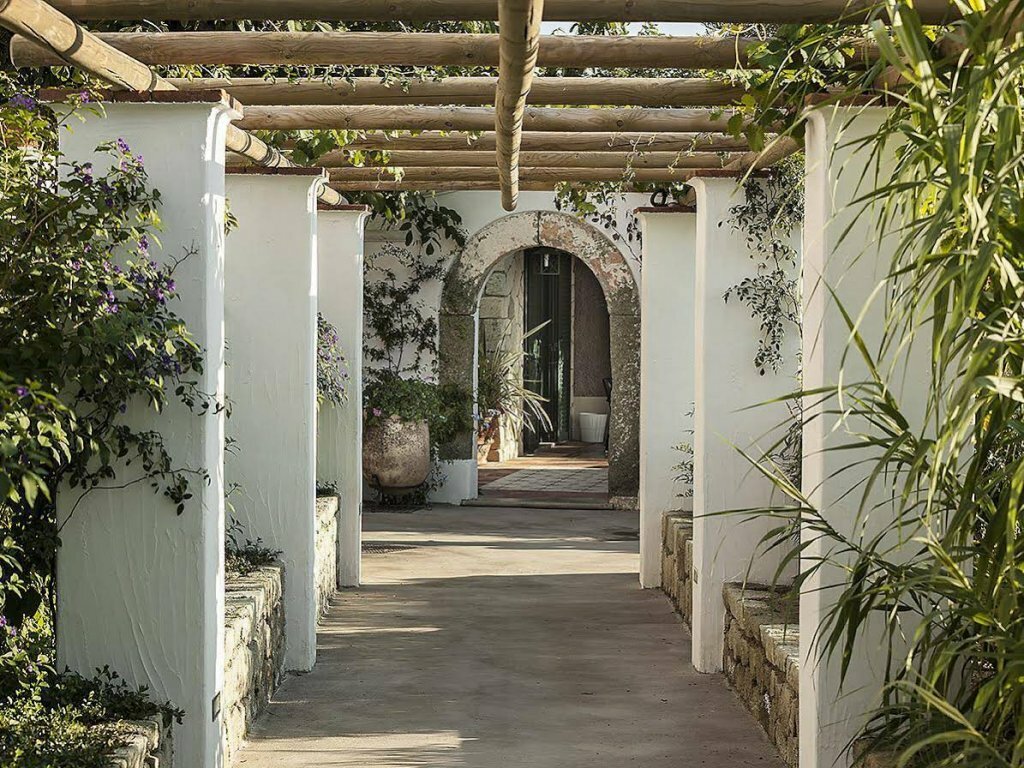 Отель расположен на возвышенности, в сельской местности над городом Форио. Это не городской и не пляжный отель. Расположение выбрано специально для максимальной тишины, уединения и панорамных видов на море и горы. Окружающий ландшафт — живописные горные склоны, заросшие средиземноморской растительностью.