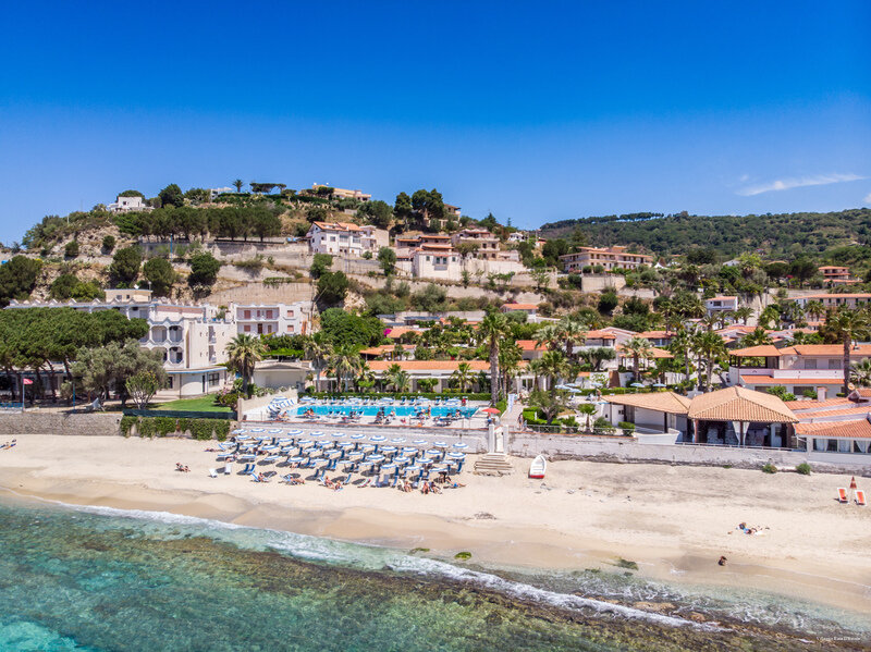 - Расположен в живописной бухте Капо-Ватикано, в 16 км от Тропеи, с прямым доступом к частному пляжу.
