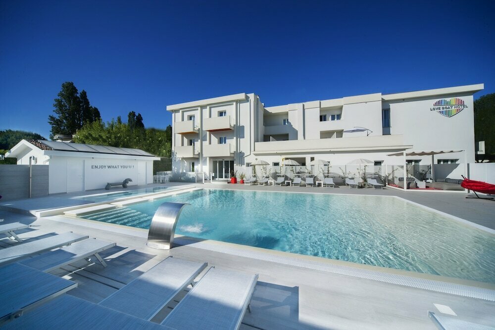 - Love Boat — современный дизайн-отель для пар в Риччоне с высокой итоговой оценкой 8.8/10, полученной за безупречный сервис и чистоту.
