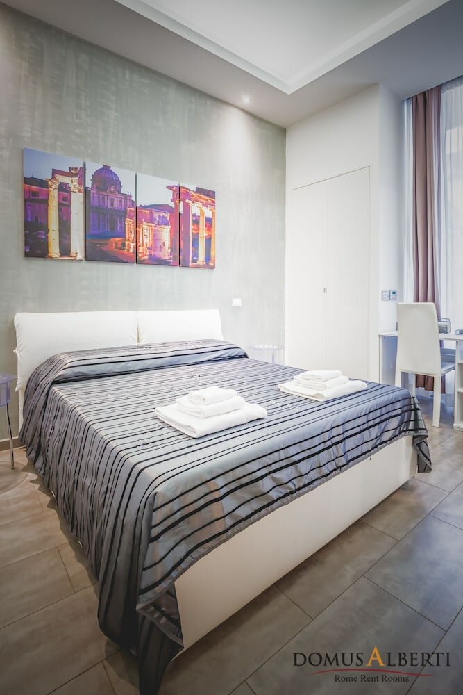 Domus Alberti — это не просто место для ночлега, а настоящий семейный B&B, где гостей принимают как дорогих друзей. Отель занимает квартиру на 4-м этаже типичного римского палаццо и насчитывает всего 5 просторных номеров-апартаментов. Интерьеры современные, чистые и продуманные до мелочей, что создает ощущение уюта и комфорта.