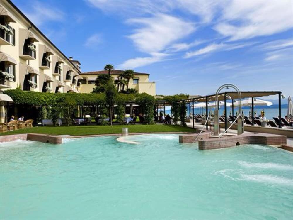 Описание: Отель расположен на живописном полуострове Сирмионе, у самых ворот замка Скалигер. Это старинное аристократическое здание с просторными холлами, высокими потолками и изысканной, слегка консервативной атмосферой. Главная особенность — комплекс природных термальных источников, который включает открытый бассейн с серной водой, крытый спа-центр с процедурами и расслабляющие зоны с видом на озеро. Отель не просто предлагает размещение, а создаёт условия для полноценного wellness-отдыха.