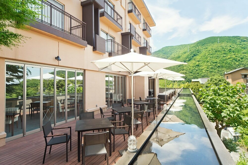 Описание: Отель состоит из нескольких корпусов разной степени современности. Старые блоки сохраняют классический стиль с татами и футонами; новые (например, «Kaze luxury tower») предлагают более современные номера с просторными террасами и частными онсэнами. Основные «фишки» — горячие источники (общие и приватные), сложные трапезы кайсэки на ужин и завтрак, а также шаттл до станции Hakone‑Yumoto.