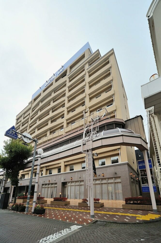 Описание: Отель представляет собой типичный городской бизнес-отель японской сети Dormy Inn с акцентом на спа-услуги. Здание современное, общая отделка в сдержанном стиле, характерном для сети. Ключевая особенность — большой термальный комплекс на крыше с крытым и открытым бассейнами горячей минеральной воды, а также сопутствующими зонами отдыха.