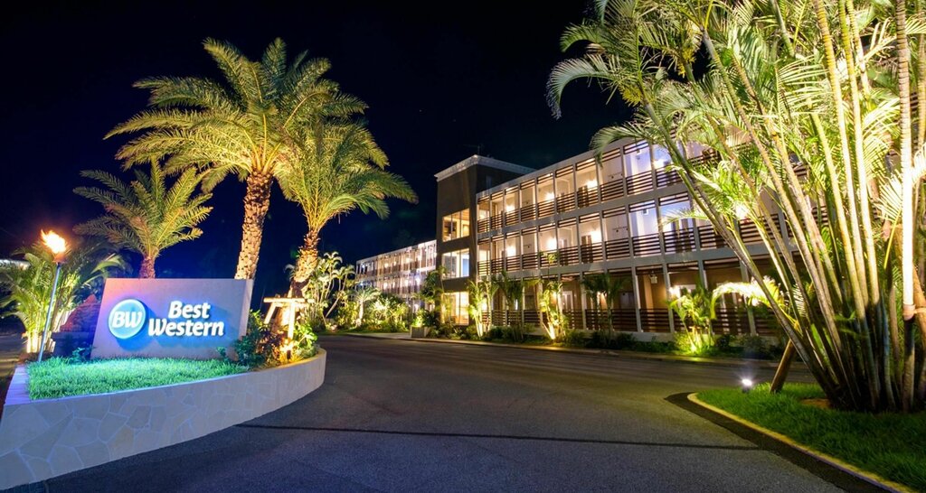 - Best Western Okinawa Onna Beach — трёхзвёздочный пляжный отель с оценкой 7.5/10, которая обусловлена удачным расположением на берегу океана, но устаревшей инфраструктурой.