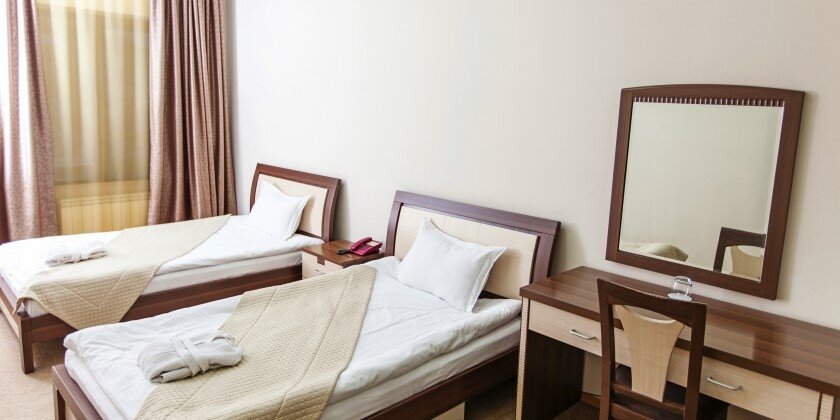 - 1Значительно уставший номерной фонд — старая мебель, потертые двери, местами требуется ремонт санузлов.