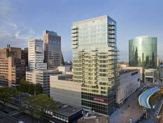Расположение: Отель находится в самом сердце Роттердама, в пешеходной зоне над торговым центром. Район центральный, безопасный днём и вечером, с плотной застройкой и активной городской жизнью.
