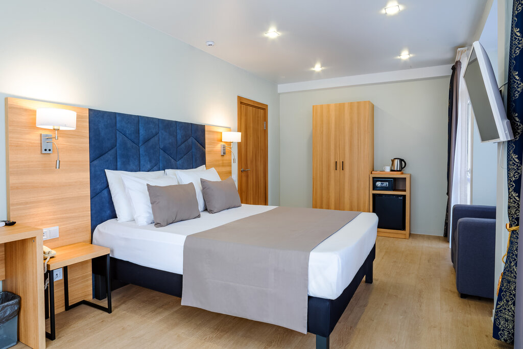 • Размер и комфорт: номера просторные, особенно категория «супериор». Удобные кровати, качественные матрасы и подушки. Для каждого гостя отдельные одеяла. Хорошая, порой отличная звукоизоляция от улицы при закрытых окнах/балконе.