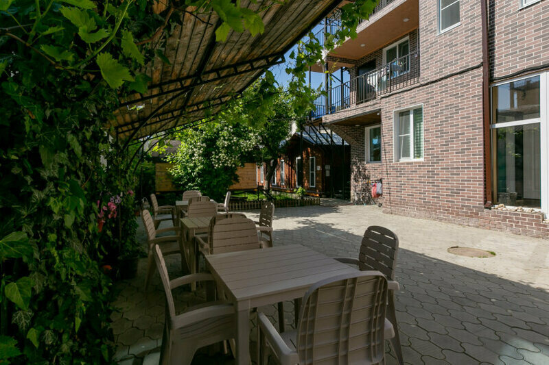 - Территория: Закрытая, охраняемая, с видеонаблюдением. Мощеный дворик украшен зеленью и виноградом. Созданы все условия для отдыха с детьми.