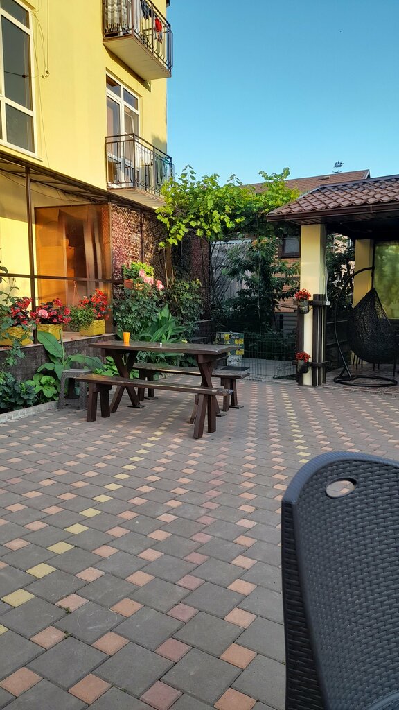 Описание: Трёхэтажный современный гостевой дом на 33 номера, отличающийся идеальной чистотой и ухоженной территорией. Ключевой особенностью является наличие летней кухни (беседки) с полным набором посуды и техники, а также общей зоны для барбекю и каркасного бассейна во дворе. Интерьеры выдержаны в спокойных пастельных тонах. Общая атмосфера — камерная, домашняя, ориентированная на создание уюта и комфорта без излишней помпезности.