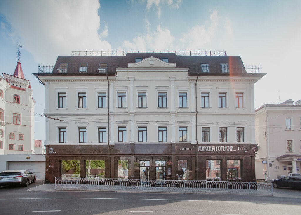 - Отель «Максим Горький» — городская трёхзвёздочная гостиница с оценкой 7.9/10, где высокая оценка обусловлена безупречным сервисом и идеальной локацией, а не состоянием номеров.