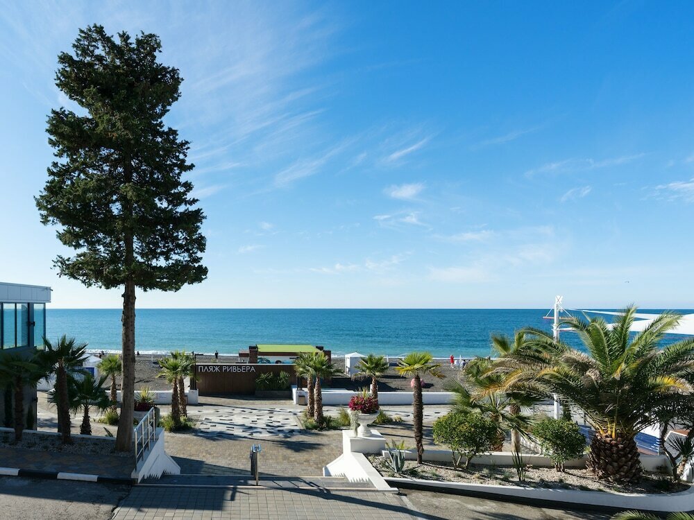 Пешая доступность: Локация идеальна для прогулок. Прямо от отеля начинается живописная набережная реки Сочи, ведущая к морю. Район безопасный, оживлённый, но в то же время лишён суеты центральных магистралей.