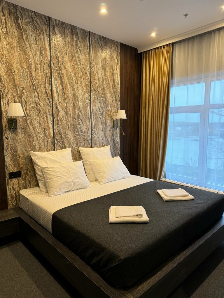 Отель предлагает размещение в 30 номерах, которые можно условно разделить на три категории: стандартные, номера без окон (с джакузи) и люксы. Общая черта всех категорий — простор. Свежий ремонт, новая мебель, большие кровати с белоснежным постельным бельём и халаты/тапочки создают базовый комфорт. В некоторых номерах есть джакузи прямо в комнате, что является экзотической особенностью. На первом этаже находится банный комплекс с хамамом, сауной и бассейном. Есть собственный ресторан с грузинским уклоном в меню. Судя по всему, отель активно работает над улучшением сервиса, но испытывает трудности из-за специфики здания и локации.
