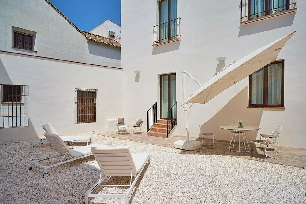Описание: Апартаменты занимают историческое здание, оформленное в традиционном андалузском стиле с внутренним патио, озеленённым и обставленным столиками. Это современные, светлые и просторные помещения с дизайнерским ремонтом и качественной техникой. Кухни полностью оборудованы для самостоятельного проживания. Общая атмосфера — домашний уют с качеством уровня хорошего отеля.