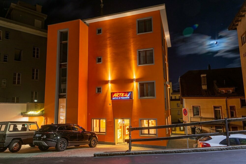 Описание: Hotel Arte — это 34-номерный отель в трёхэтажном здании, фактически представляющий собой небольшую гостиницу с элементами апарт-отеля: во многих номерах есть небольшая кухонная ниша. Характерная черта — почти полное отсутствие общественных зон: здесь нет привычного лобби или лаунж-зоны для гостей. Ощущение пространства создают лишь компактный ресепшен и ресторан-пиццерия La Stalla на минус первом этаже, где сервируют завтрак. Благодаря центральному положению отель ориентирован в первую очередь на туристов, отдыхающих активно: лыжников, сноубордистов и путешественников, исследующих Энгадин. Многие гости отмечают душевную, почти семейную атмосферу.