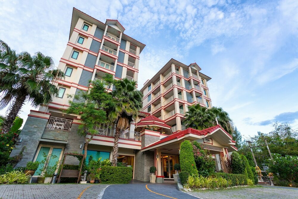 Описание: Отель позиционируется как современное заведение для путешественников, сочетающее доступную стоимость и удобное расположение. Основная аудитория — туристы эконом- и среднего класса, отдыхающие парами и семьями. Особенность отеля — наличие двух бассейнов, которые, однако, небольшие и не всегда хорошо освещены солнцем. Фасад выполнен в традиционных тайских тонах (оттенки красного и кремового), что создаёт колоритный местный антураж.