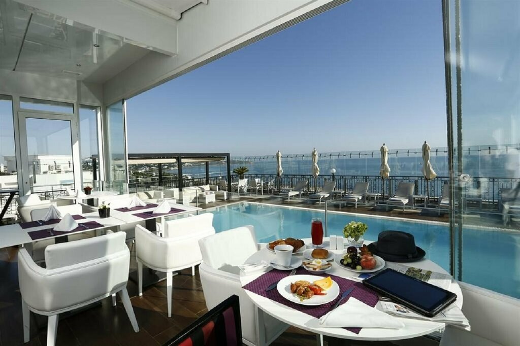 Описание: Небольшой бутик-отель на 29–30 номеров, сочетающий европейский дизайн с тунисским колоритом. Основные козыри — расположение прямо на променаде с видом на море, просторные современные номера и знаменитый rooftop-ресторан с бассейном «360», который гости часто называют главной изюминкой. Отель позиционируется как элитный и уютный, подходящий как для романтического отдыха, так и для деловых поездок.