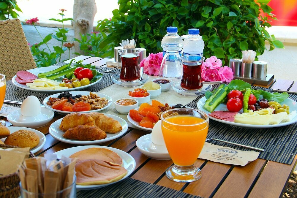 - Атмосфера: Завтрак подаётся в уютной обстановке сада или террасы. Многие продукты, такие как зелень и фрукты, выращиваются в собственном саду отеля, что добавляет завтраку очарования и экологичности.