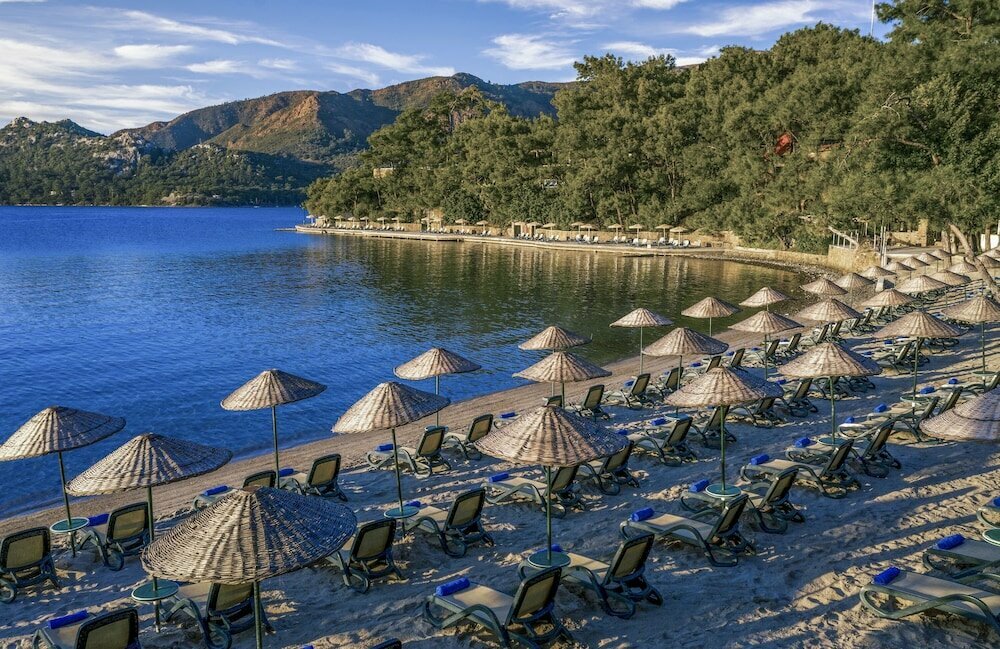 - Он расположен в уединенной бухте национального парка в 5 км от Мармариса, что обеспечивает тишину и прямой доступ к морю.