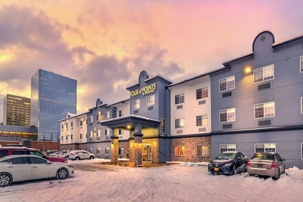 Four Points by Sheraton Anchorage Downtown позиционируется как трёхзвёздочный отель среднего класса в центре Анкориджа, открытый после реновации 2019 года (по некоторым данным — в 2020 году). Отель привлекает гостей удачным расположением в двух шагах от музея и торговых центров. Основные плюсы — просторные номера в формате сьютов, дружелюбный персонал и бесплатная парковка. Однако в отзывах часто встречаются жалобы на сильный шум от ночного клуба напротив и уличного движения, устаревшие интерьеры с потрёпанными коврами, а также проблемы с климат-контролем. Многие отмечают, что отель подходит для коротких остановок на 1–2 ночи, но для длительного проживания комфорт может быть недостаточным.