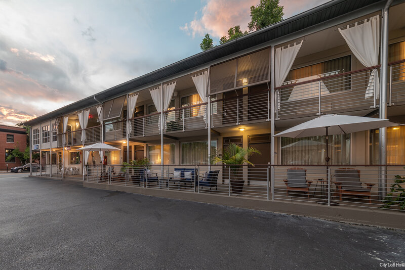 City Loft Hotel — яркий пример успешной реконструкции типового американского мотеля середины прошлого века в стильный и уютный бутик-отель. Архитектура здания сохранила типичные черты мотеля с отдельным входом в каждый номер с улицы, но внутри гостей ждут просторные, дизайнерски оформленные пространства с высокими потолками, современной отделкой и роскошными ванными комнатами, которые часто превосходят по размеру спальную зону.