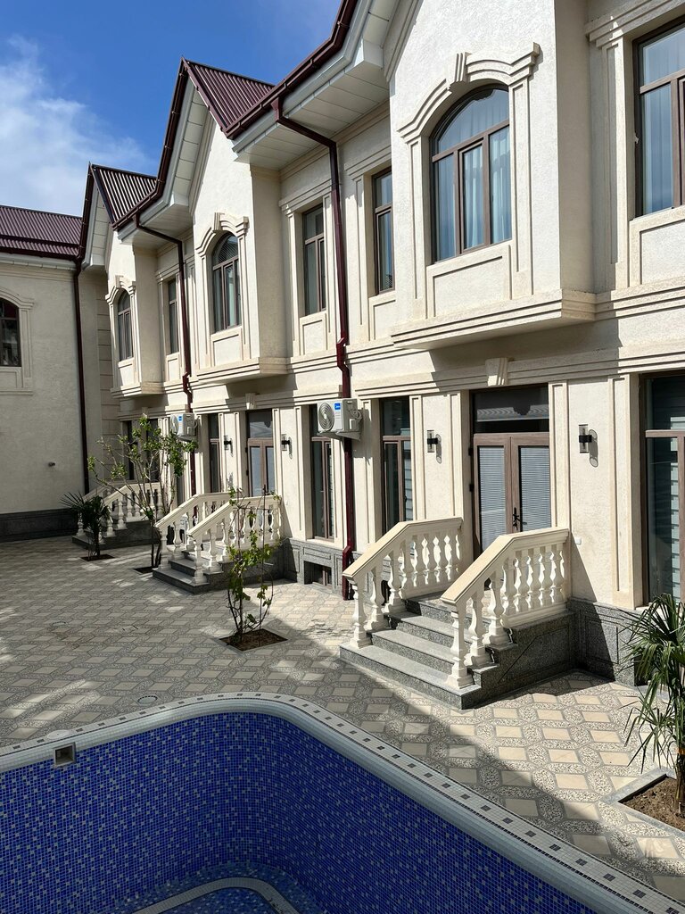 - Позиционирование: Уютный загородный гостевой дом с бассейном и семейной атмосферой. Ценовая категория — высокий сегмент, однако гости отмечают, что по соотношению цены и качества отель значительно выгоднее больших сетевых отелей Самарканда.