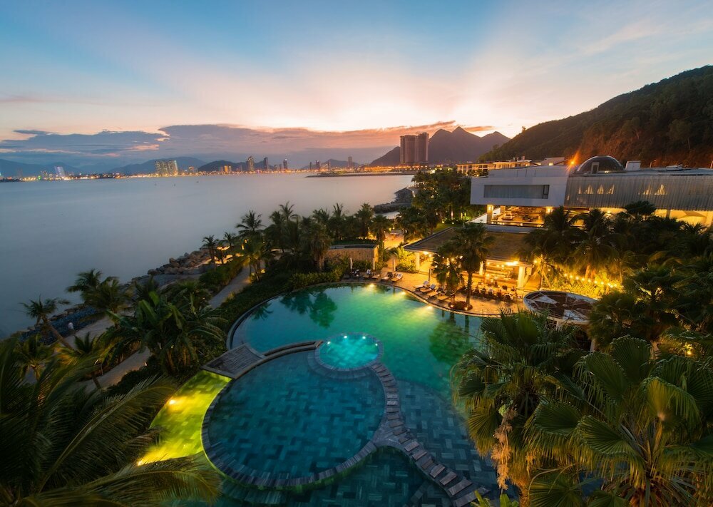 - Alibu Resort Nha Trang — современный курортный отель 4* с высокой оценкой 8.5/10 благодаря уникальному расположению в собственной бухте с пляжем, безупречной чистоте и исключительно дружелюбному персоналу.